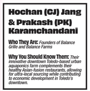 restaurants, PK and CJ found a unique building downtown to house an aquaponic farm and a new restaurant location. The farm allows them to have more control over the quality of crops and speed of their growth. They were also able to capitalize on the traffic brought downtown by ProMedica’s move to the nearby Steam Plant.