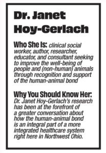 She is proud to admit that HARP is one of the few human-centric recipients of Dr. Janet Hoy-Gerlach Who She Is: clinical social worker, author, researcher, educator, and consultant seeking to improve the well-being of people and (non-human) animals through recognition and support of the human-animal bond Why You Should Know Her: Dr. Janet Hoy-Gerlach’s research has been at the forefront of a greater conversation about how the human-animal bond is an integral part of a more integrated healthcare system right here in Northwest Ohio with the Kenneth A. Scott Charitable Trust, a grant normally focused on preventing-animal cruelty and promoting the humane treatment of animals. But her Toledo-area impact reaches far beyond a single initiative.