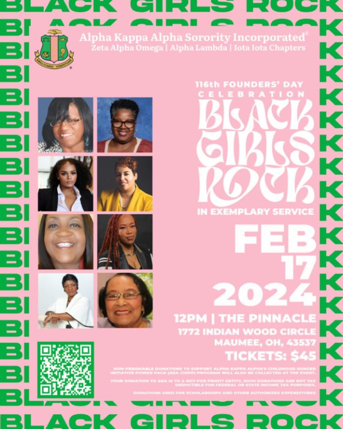 The Zeta Alpha Omega Chapter of Alpha Kappa Alpha Sorority to host Black Girls Rock in Exemplary Service Celebration on Saturday, Feb. 17, 12 pm at The Pinnacle in Maumee.