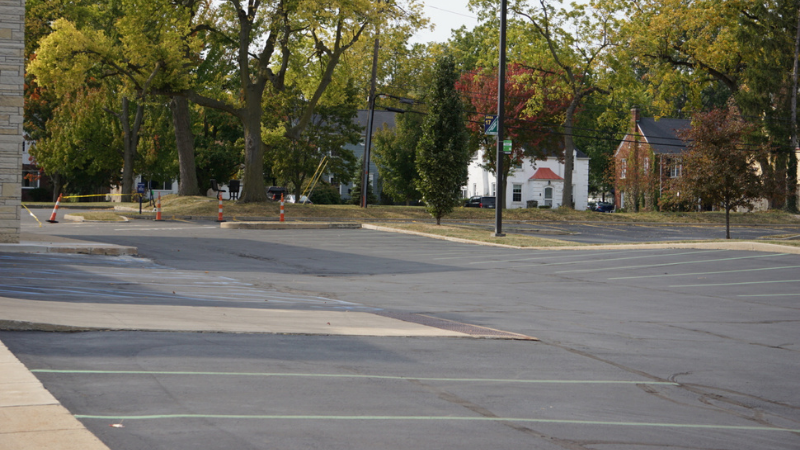 While a few students can be seen walking around campus, the overall scene is much calmer than it would usually be during midterm week.