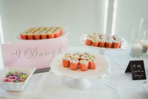 Say “I dough” with a table filled with Cookie Doughlicious dough shots. The company can customize the shots based on your color scheme and flavor preferences, as they did with these pastels for the summer wedding pictured: M&M shots made