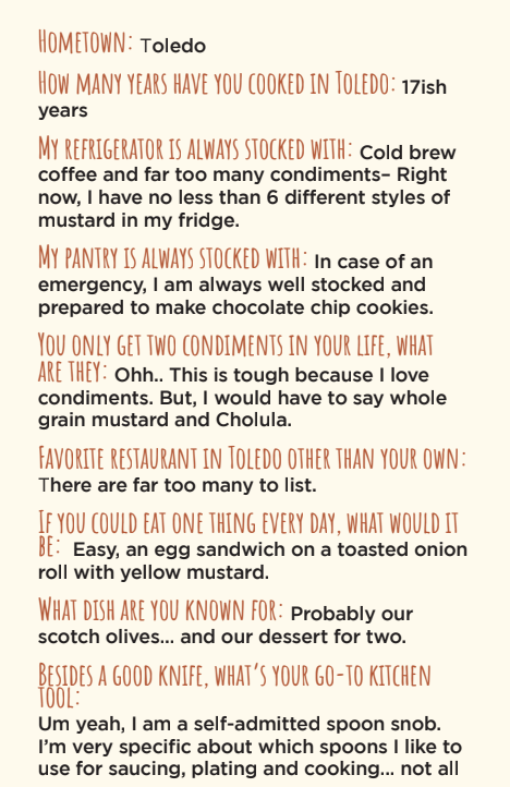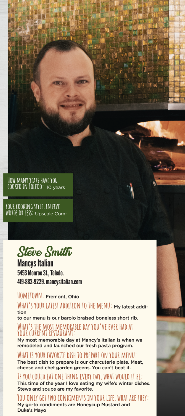 Foodies in northwest Ohio have a surfeit of choices when it comes to enjoying a great restaurant meal. The chefs that are creating the fare that defines our region are profiled here.