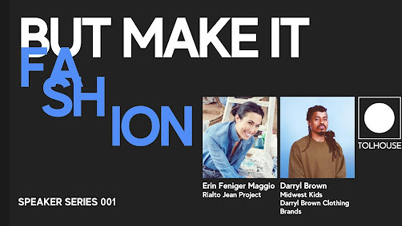 The inaugural TolHouse speaker series event “But Make It Fashion” will feature speeches by Rialto Jean Project’s Erin Feniger Maggio and designer Darryl Brown on Thursday, November 11.