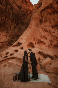 Worada and Jason Elchert got married in the Valley of Fire State Park, a striking location for photos and romance.