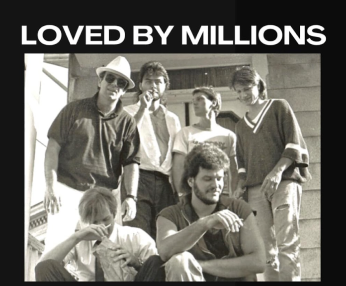 In early 1985, guitarists/vocalists David Burk and George Cunningham placed a classified ad in a college newspaper that was answered by drummer Tim Gahagan. The band that grew out of that was called Bernice Und Ze Rippers, a name culled from John Lennon’s book “In His Own Write.” Bernice began gigging at college venues in Bowling Green and Toledo, and we were soon joined by bassist E.J. Wells and keyboardist Chad Smith. Later in 1985, Bernice was joined by frontman/vocalist Steve Athanas, whose history included Toledo bar bands the Raisin Band, Locoweed, the Best and the Wet Shavers (and more recently, the Homewreckers). The band renamed themselves “Loved By Millions,” taken from a graphic displayed onscreen in a Jim Nabors TV record album commercial.
