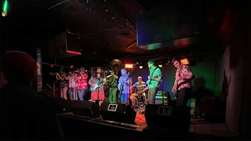Their first real “gig” was at Frankies, on Toledo’s East Side, and then the local band Tropic Bombs basically took the Militia under its wing. The Ice Cream Militia has since played in Detroit, Bowling Green and plans to branch out to other areas. Because of Tropic Bombs, The Ice Cream Militia has expanded its numbers, as well, adding a brass section which includes a trumpet, two trombones and a tuba. Now there are nine band members.