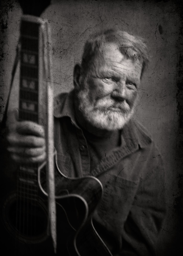 Back at the old Ottawa Tavern on Bancroft. It’s mid-summer in Toledo, probably ’87 or ‘88, the AC is cranking, rattling hard at the O.T. The Tuesday night crowd has snapped up most of the tables on the right side of the club; the bar to the left is packed, chatter fills the room, a sweaty, aromatic funk permeates, whiskey and beer glasses clank and an unassuming, bespeckled figure picks up a battered, but beautiful Guild six-string, held up by — What’s that? A shoe-string?