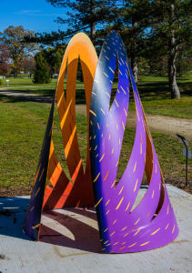 Another piece from local artist, Robert Garcia, is made to be interactive. Fountain of Wishes invites you to walk inside and through this rolled steel and hand cut with a plasma torch design. Garcia melds sculpting with painting, as the steel is meticulously hand-painted.