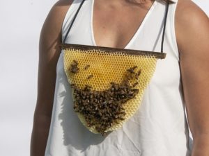 The Toledo Federation of Arts Societies Award went to Tom Muir for Beekeeper’s Neckpiece, a necklace made from a drawn wax comb, walnut, and cord. It is a unique piece that displays an appreciation for the craft of beekeeping. Its simplicity is a refreshing contrast to what most people expect of jewelry.