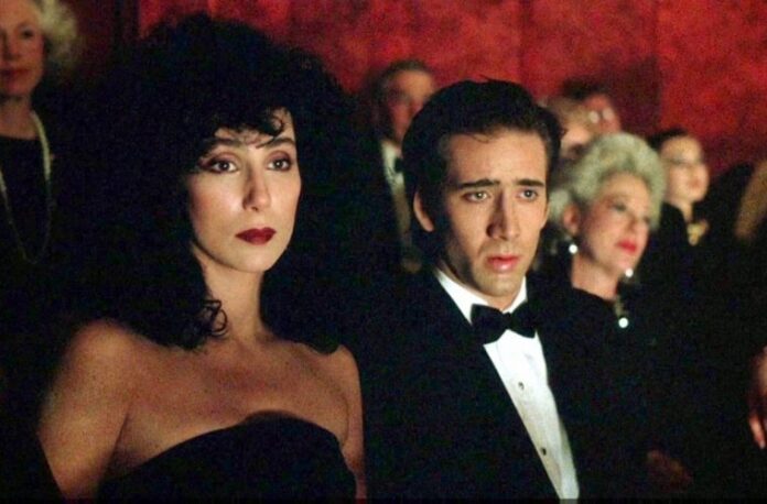 Released in 1987, Moonstruck stars Cher as Loretta Castorini, a 37-year-old Brooklyn widow who accepts a marriage proposal from her oafish boyfriend Johnny, played by Danny Aiello. Loretta has given up on finding real happiness after her husband was hit by a bus, and we sense that her relationship with Johnny is not passionate but purely practical. She’s been living in a multigenerational house with her parents and grandfather. Her Brooklyn neighborhood is pre-gentrification, where everyone knows everyone. She works in a funeral parlor and knows all the neighbors she grew up with. After the acceptance of Johnny’s marriage proposal, he leaves on a trip to see his dying mother in Sicily and get her blessing of the marriage. Johnny asks Lorretta for one favor, to go see his younger brother Ronnie, with whom he’s had a falling out years ago, and ask him to come to their wedding. All these actions are taken to clear up the “bad blood” in the family, so the marriage won’t be cursed.