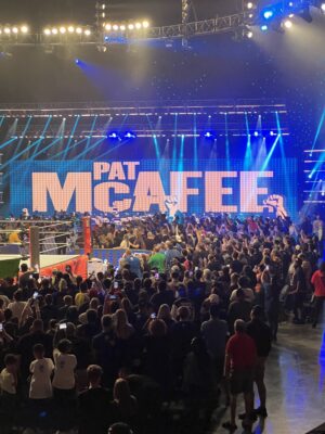 - Capping off the evening was the main event of McIntyre against Balor. As the title of this review states, “The pyro is louder in real life,” which was exactly what I said to my fiancée after McIntyre made his entrance. The pyro sounded like cannon fire under the roof of the Huntington, making the both of us tense up when the explosion hit, even though we both knew it was coming.