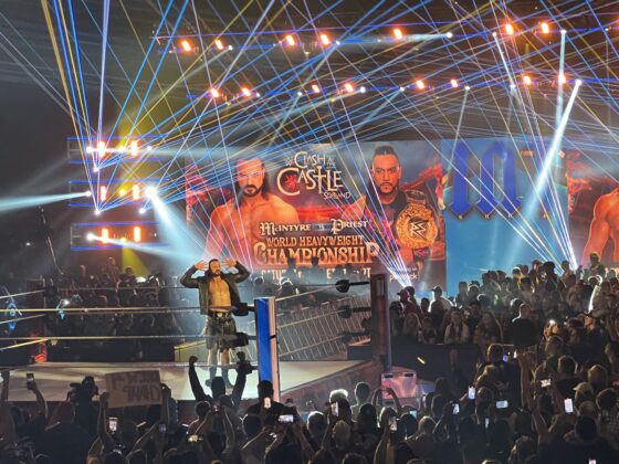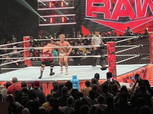 - Later in the evening was the match I was most excited for: the steamroller that is Bron Breakker – son of legend Rick Steiner – against former NXT Champion Ilja Dragonuv. This match was as intense as it could get as both warriors traded blow after blow in a non-stop frenzy that had the whole of the Huntington Center chanting “This is awesome! This is awesome!” Seeing this match in person paid for the ticket. The undersized yet supremely intense Dragonuv hit Breakker with his trademark H-Bomb finisher, but Breakker did not fall, hitting Dragonuv with not one, not two, but three heavy spears to finish the match in a clean three-count.