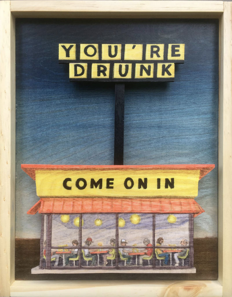 While Lamb’s use of ink on wood creates a natural look and feel, the use of dimensions in his work also provides a more life-like look to his art. “I’ve always enjoyed having that dimensional characteristic — like a little diorama almost — to make pieces. I don’t know why, but it feels neat to cut out that shape. It feels more real to me than just a drawing.”