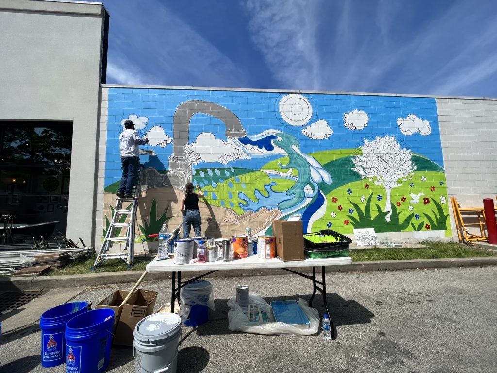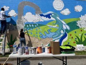 The mural will highlight the connection between natural elements and humanity with hues of blues, green and gray painted in unison. With water being the mural’s biggest focus, each element will represent humanity, nature and industry and symbiotic relationships.