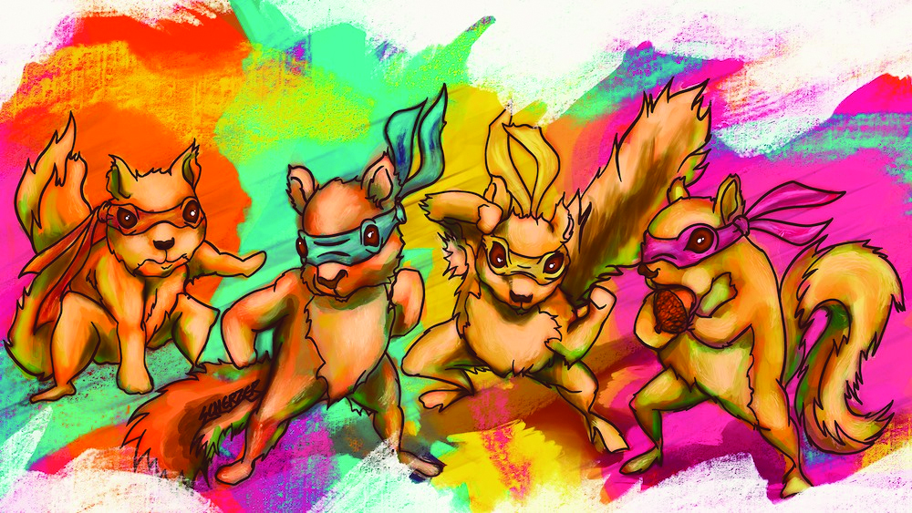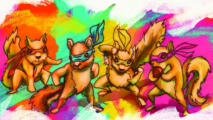 Scherzer took a nostalgic approach to the signal box project. “Nutshell Heroes,” his submission, features squirrels with enticing poses, masks, and colors. “I came across pictures of squirrels leaping through the air, and they looked hilarious. The way they play is ninja-like… I’m a child of the 80s and 90s, so that is in my head.”
