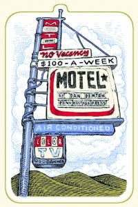 While the authenticity of the experiences are undeniable, Denton reminds readers that this is not a memoir. The narrator is bits and pieces of himself and his own experience combined with others, and different parts of his life were arranged to accommodate the motel setting. The other characters have the blended traits and personalities of multiple people. “I try to write very carefully. No matter which way we try to tell the story, being a homeless drug addict and alcoholic or living in cheap motels like I did when I was younger, there’s a lot of sadness there. A lot of times living like that is desperate and hopeless and dark.”