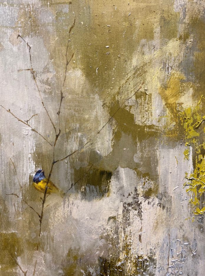 Entitled “Passing Through,” the exhibition features the nature-inspired work of Kellner, who depicts forest scenes of branches and birds over a layered background that are both unmistakable in their focus but also uniquely of their artist’s point of view.