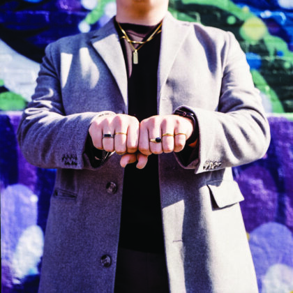 My fashion is inspired by a lot of queer art and culture, choosing things that push the boundaries of gender roles. I’m drawn to androgynous silhouettes, textures, patterns and colors that keep the eyes looking for all the various parts and pieces of my outfits. My personal fashion is a culmination of my gender expression in finding pieces that make me feel powerful, comfortable, sexy and that make others often unsure of what to call me (other than hot).