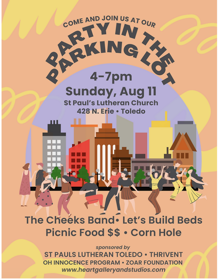 This Sunday, Aug. 11, St. Paul’s Lutheran Church, 428 N Erie St., will hold a Party in the Parking Lot from 4 pm to 7 pm.