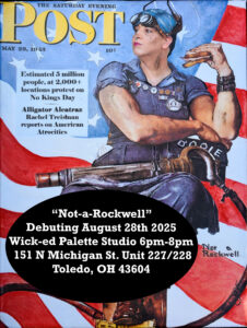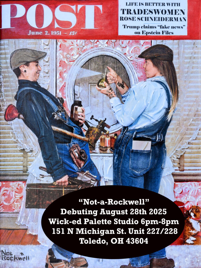 The “Not A Rockwell” exhibit will be up for one night at Wick-ed Pallette Studio, located at 151 N. Michigan St., Units 227/228 and then will be displayed at Artomatic on Sept. 19-21 at the Erie St. Market.