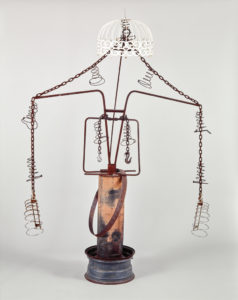 Another fascinating piece, How Do I Look by Joe Minter, uses welded found metal, which the artist’s father also created with. “God gave my father the gift of mechanics,” Minter explained in daily correspondence with William Arnett between 1998-2001. “But after his (my father’s) discharge from the army, he could not use his skill in Birmingham because of racism.”