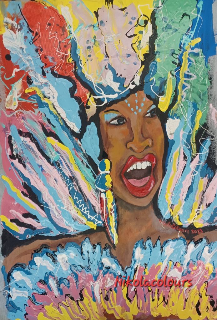 One of her recent art pieces, The Spirit of Carnival, holds roots from Welcome-Bovell’s South American background. She explains the artwork represents freedom in culture, freedom from slavery, but also joy and happiness.