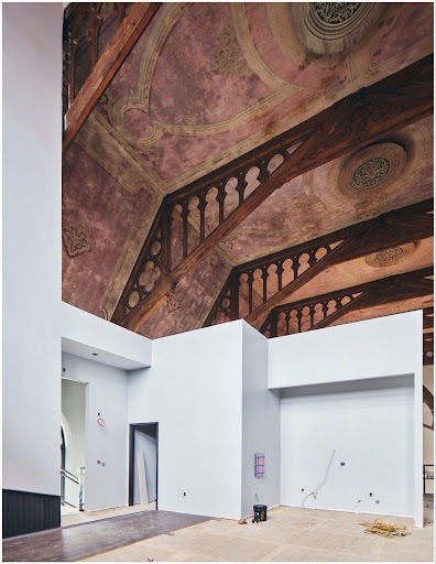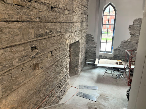 Once completed, Westminster Church will become a large office space, with an added mezzanine, for Underwood’s company, NEMSYS. Featuring large, open spaces, with lots of windows designed to match historic standards. “You can’t guess what it was before. You have to restore it to what it was, and it has to be documented as what it was…. The church’s ceiling, the beautiful plaster ceiling that we found, we have restored it with a distressed look. We couldn’t restore it to the original, because we have no pictures of the original,” explained Treuhaft.