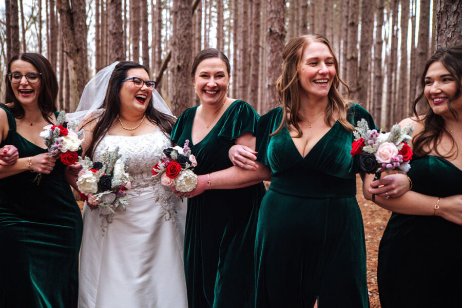 Tell us about your attire. My gown and veil were from The Brides Project in Ann Arbor, a store with an incredible mission and story behind it. Alterations were done by Luxe House of Gail, Sarah Brown. Justin wore a vest, bow tie, and tie from Azazie. As for shoes — I wore plain white tennis shoes all day. Comfort was non-negotiable.