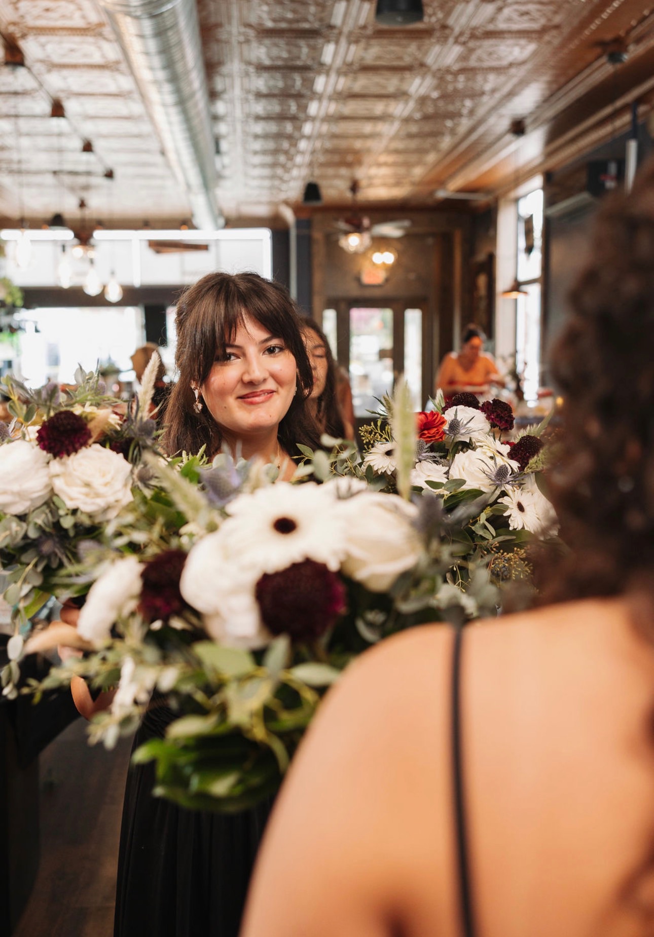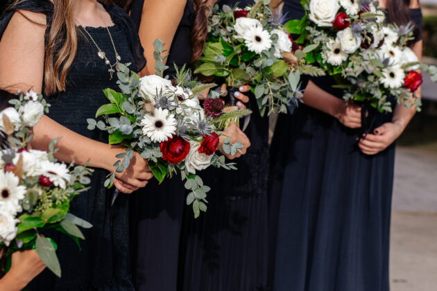 Tell us about your florals and décor. Florals were by Pineapples & Parties, featuring bouquets only — no boutonnieres. Décor was also designed by P&P, with select pieces borrowed from Social Events Co. to complete the look.