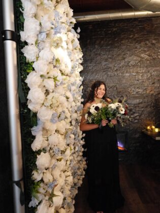 What were your standout décor elements? The Essential Touch flower photo wall was a key feature. It included two neon signs and doubled as our guest book experience, where guests took Polaroid photos, signed them and placed them into a book. Hafner Florist assisted with coordination, and the photographer helped bring it together.