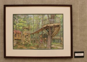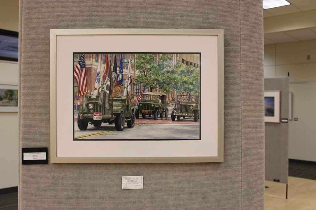 Walking through the gallery, it’s easy to see why. From the Metroparks’ new treehouses to the lively spectacle of Jeep Fest, her paintings captured both the landmarks and the less-obvious corners of the community.