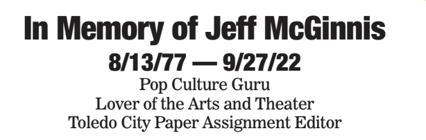 While Jeff was known for his incredible work as a journalist — he won a Touchstone award in 2019 for his work on “She’s in the Scene: Toledo’ Women in Music” and was nominated for another award this year — his creative voice made an impact on our community in countless ways. His pop culture expertise came into play during his time as an on-air host for local radio station 92.5, and he made his mark on the theater scene at BGSU, where he was involved in their productions. Jeff was also a prolific short story writer who has had his work published in anthologies like “Monster Earth.” In short, Jeff’s life was spent telling stories, making people laugh, and bringing to light human interest pieces that touched all of our hearts.