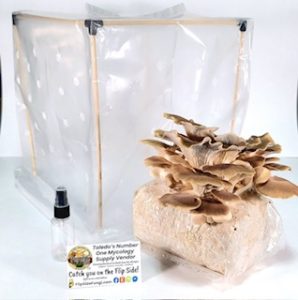 Vandergrift designed a tent system that covers his mushroom blocks. After researching why certain mushroom kits have negative reviews, Vandergrift found that the complaints were that the fruits would dry out during the growth process or the kits would get contaminated because growers would spray the kits directly. Vandergrift says his tent system will keep the mushrooms from drying out and will help improve overall efficiency of the mushroom growing process. Each order from Flip Side includes a hand-made humidity dome, a misting bottle and a set of detailed instructions.