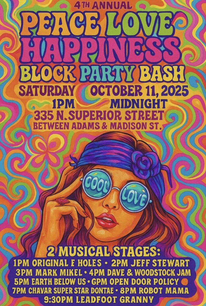 The city’s most anticipated street festival returns for its 4th year, and it’s bigger, louder, and more joyful than ever. The Peace Lover Happiness Block Party Bash takes over Superior Street with two live music stages, a colorful crowd, local food, art, and a deep sense of community that keeps people dancing until midnight.